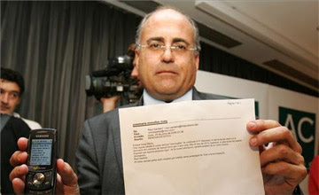 Josep Mesalles, the representative of Samuel Eto'o, showing at a press conference this morning the last-minute renewal offer (by mail and by sms) that Barcelona made last night around 23:30 pm.